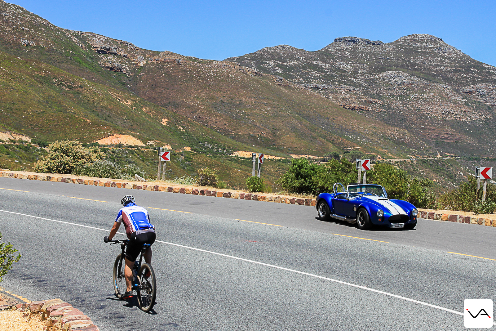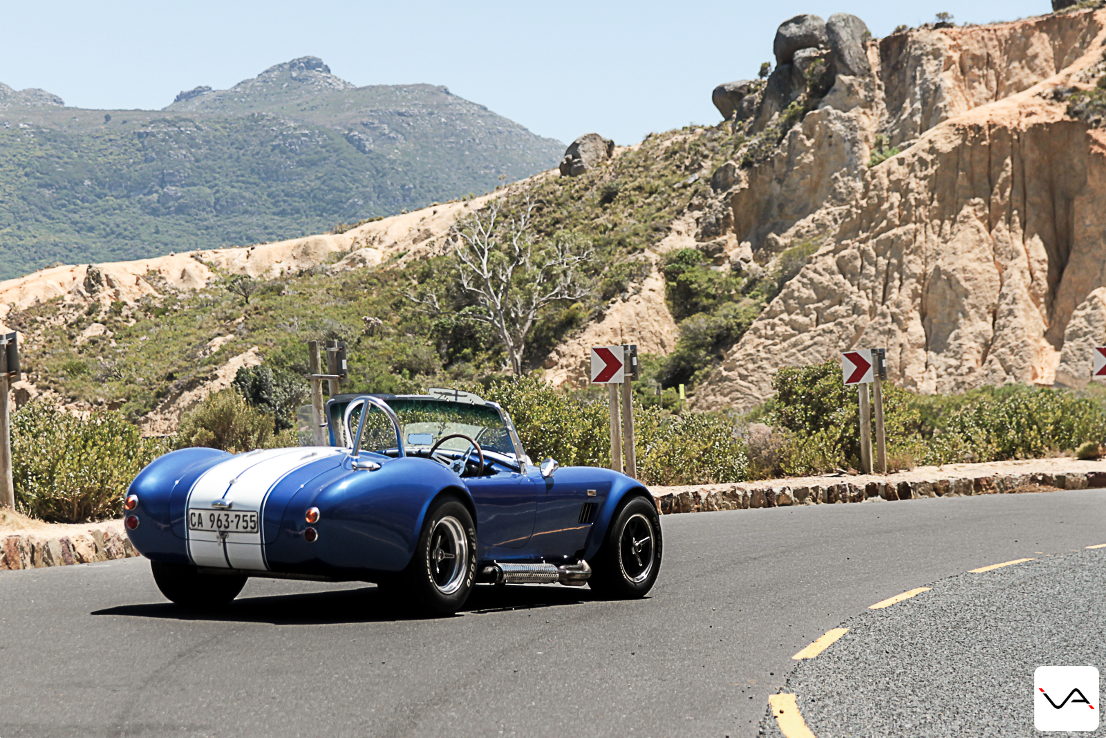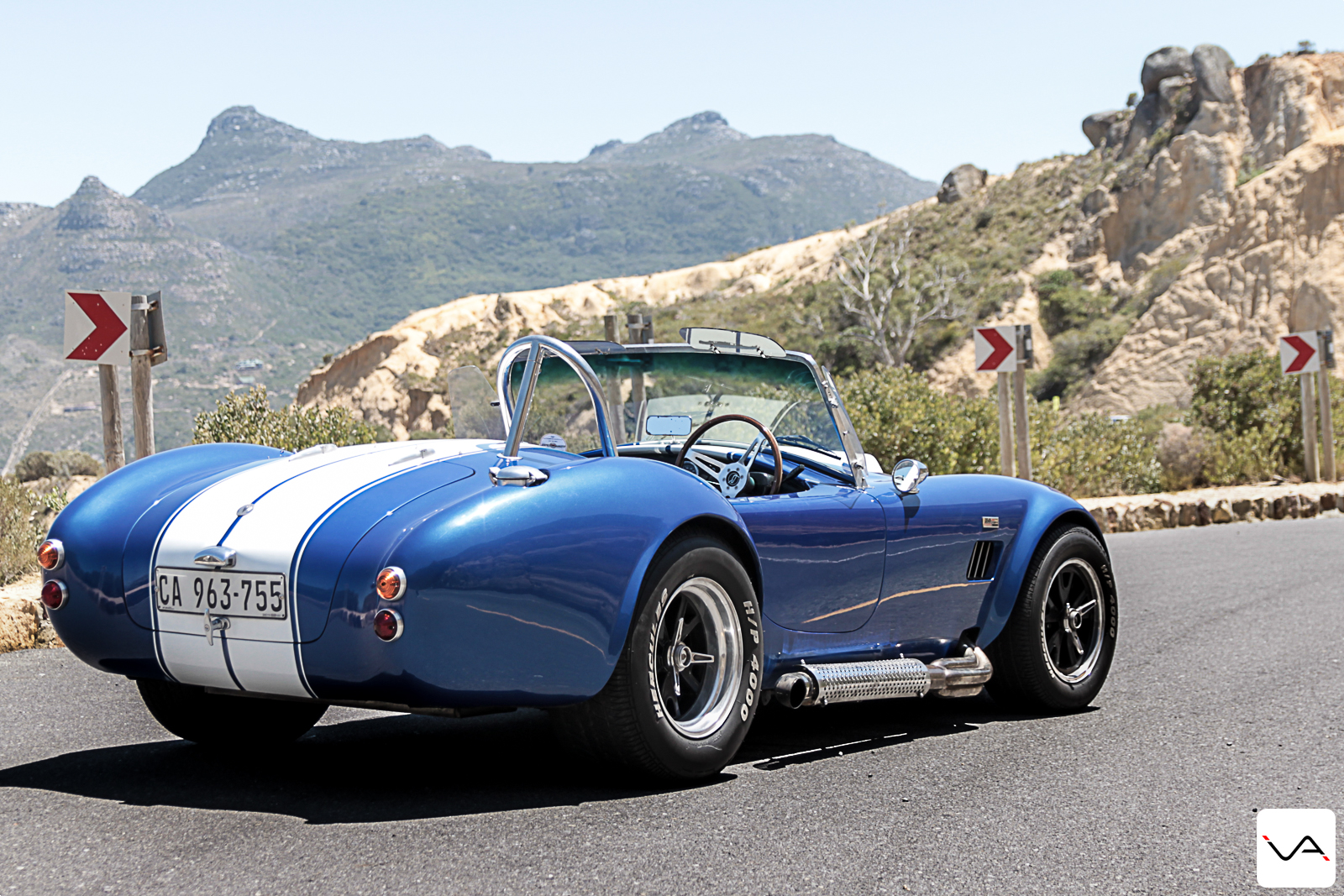 Les Cobra de la société sont en boite automatique. Je suis un peu déçu en le remarquant mais en même temps, la voiture est équipée d’un moteur 5,7L de 375ch. Et savoir que je n’aurais pas l’embrayage à gérer me plait bien. En plus, c’est probablement plus simple à prêter qu’un gros embrayage. En effet, notre journée démarre dans les embouteillages du Cap. La majorité des gens vont au travail et la vue de ce monstre leur donne un large sourire. Les questions et remarquent fusent. Quelle est la cylindrée ? Quelle est la puissance ? Peux-tu mettre un grand coup de gaz ? Est-ce que ça burn ? La passion automobile dans ce pays est incroyable. Mais nous y reviendrons un jour.