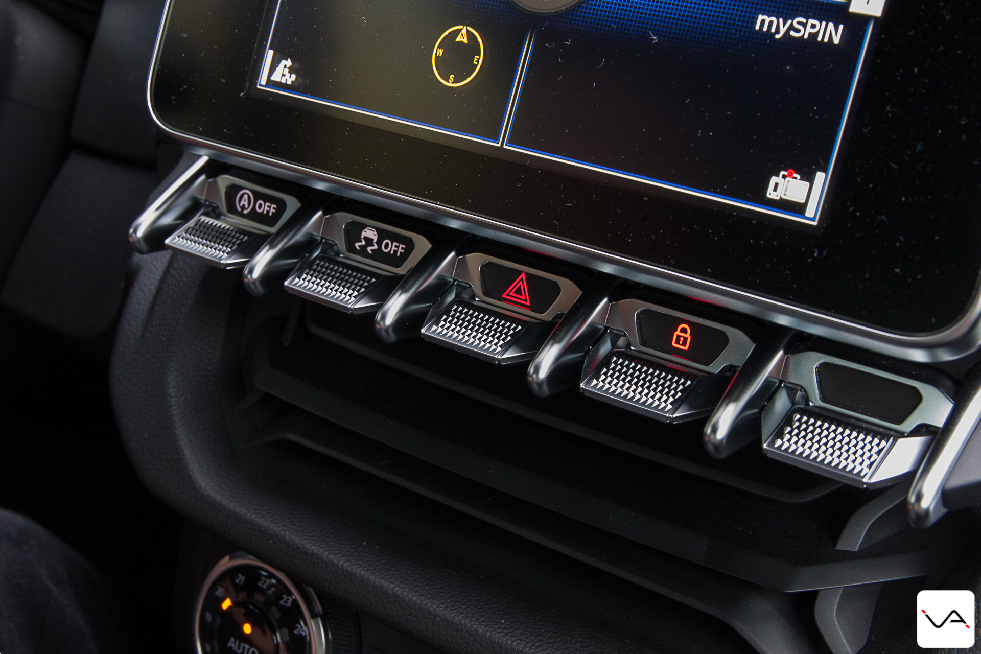 Bon, elle a tout de même quelques défauts assez notables. La boite à gants tout d’abord car si une fausse découpe dans la planche laisse suggérer la présence d’une boite à gants, il n’en est rien. Elle se situe en fait entre les deux sièges et se présente sous forme d’une sacoche suspendue peu (si ce n’est PAS) accessible. L’écran central ensuite fait également défaut. Il sort du Suzuki Jimny et est aussi peu réactif et de faible définition. L’esprit dépouillé est agréable mais l’ensemble du cockpit manque de qualité perçue, donnant une impression de fragilité.