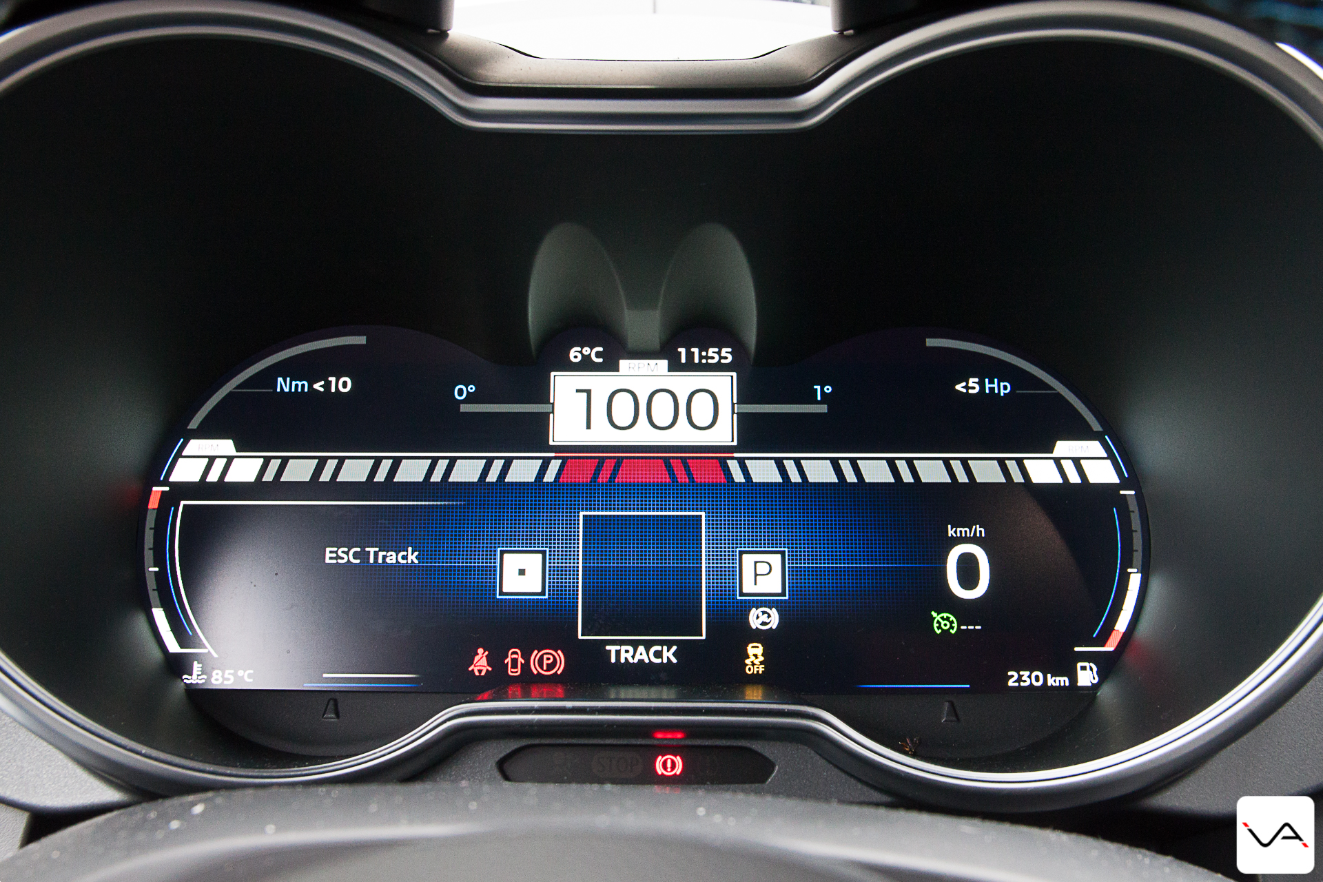 En pressant le bouton de démarrage, le moteur émet une sonorité bruyante mais pas forcément agréable. On démarre, en mode normal, et on oublie très vite le moteur grâce à la boite de vitesse EDC qui fait un travail remarquable. Elle est discrète, rapide, et on se retrouve fort vite en 5eme à 40 km/h. Sur route départementale et autoroute, à régime stabilisé, le bruit du moteur se fait plus présent de nouveau et devient désagréable, alternant entre bourdonnement général et sifflement du turbo. Pour ce qui est d’une conduite que nous qualifierons de civilisée, cette voiture peut être donnée à tout le monde, à condition de prendre en compte le gabarit. En effet, la visibilité dans les coins, à l’avant, est assez mauvaise.