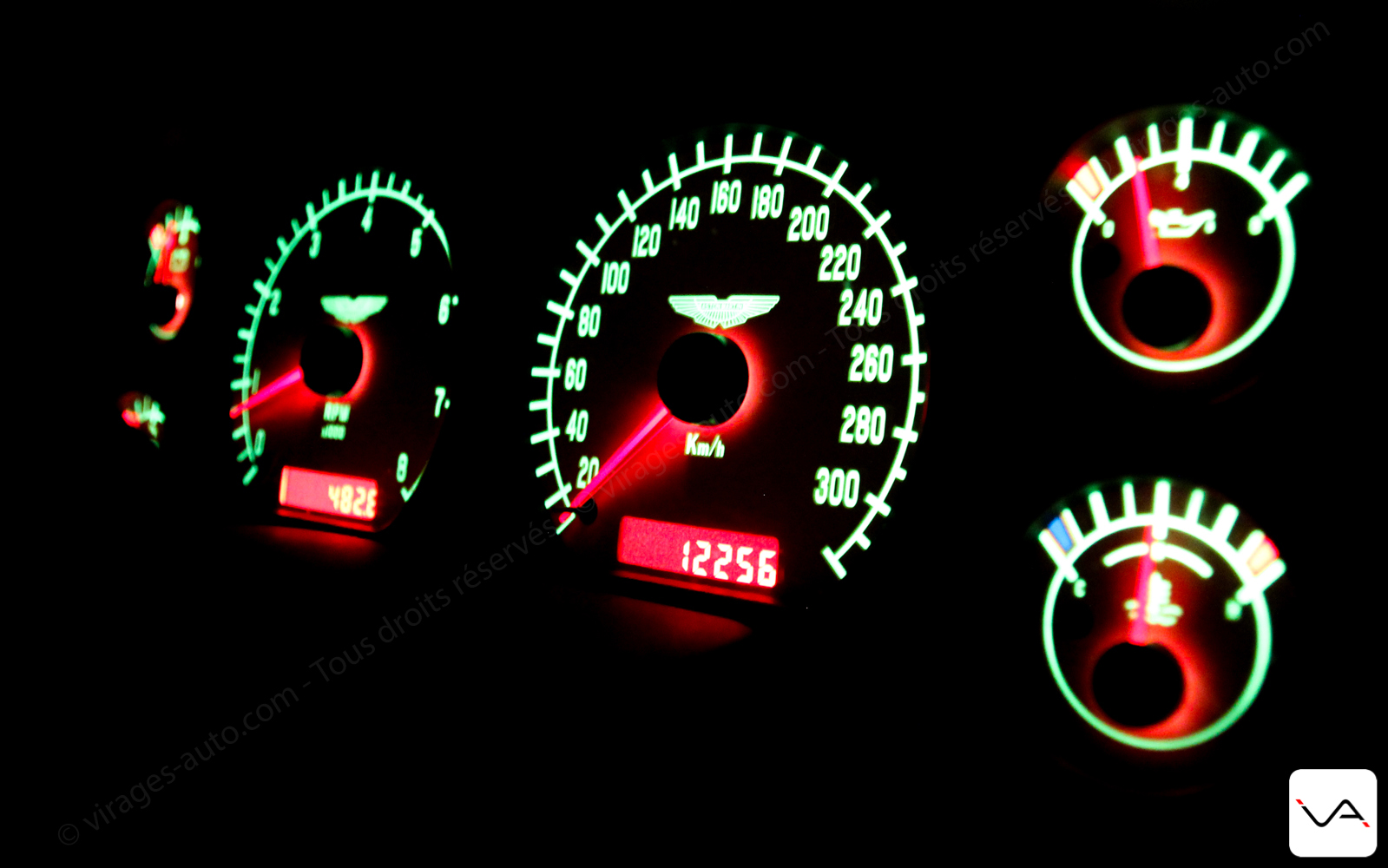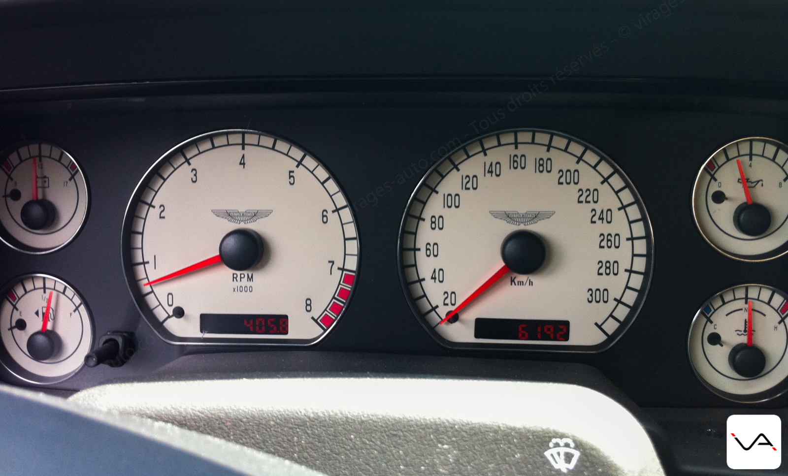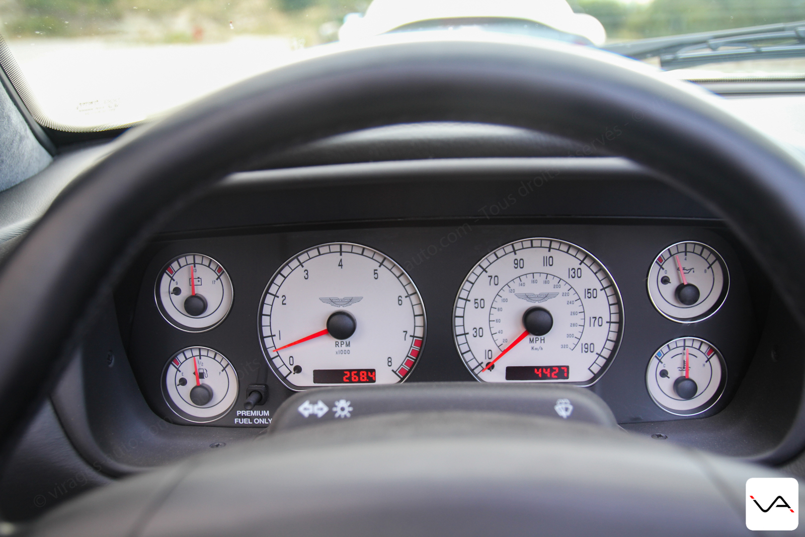 Quelques mots sur l’ergonomie qui est, comme toujours chez Aston, sans faille (ça vous fait rire ? Nous aussi). Le meilleur exemple est une sortie de péage : je remonte ma vitre et j’aperçoit un voyant orange. J’essaye de le décoder et ça ressemble à un pneu à plat… Le voyage venait de débuter, ça commençait mal ! Je m’arrête, constate que les pneus ont l’air OK. En redémarrant le voyant a disparu. Tout va bien jusqu’au péage suivant ou le voyant réapparait. Quelques kilomètres me font comprendre que le bouton pour déconnecter l’antipatinage est placé naturellement où on cherche celui des vitres, tandis que celui pour les vitres est en retrait… Et que ledit voyant n’était franchement pas explicite ! #boulet