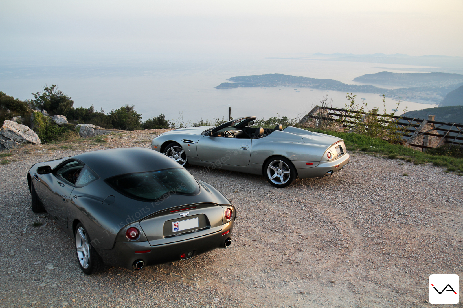 Le point d’orgue restera à mes yeux un shoot photo avec les deux ensemble. Le trajet avec deux Zagato qui se suivent est déjà en soi extraordinaire. Encore plus quand les routes en question sont les corniches au-dessus de Monaco ! Une fois sur place j’ai pris le temps. Le temps de comparer, d’apprécier les courbes et les reflets, découvrir certains détails alors que je pensais déjà les connaître sous toutes les coutures. Le soleil couchant (et oui, encore lui !) donnait une lumière ambrée et mettait encore plus en valeur les lignes. Assurément l’un des meilleurs souvenirs de ma vie de passionné ! Mais il est déjà temps de repartir et de refermer le garage sur ces deux beautés…
