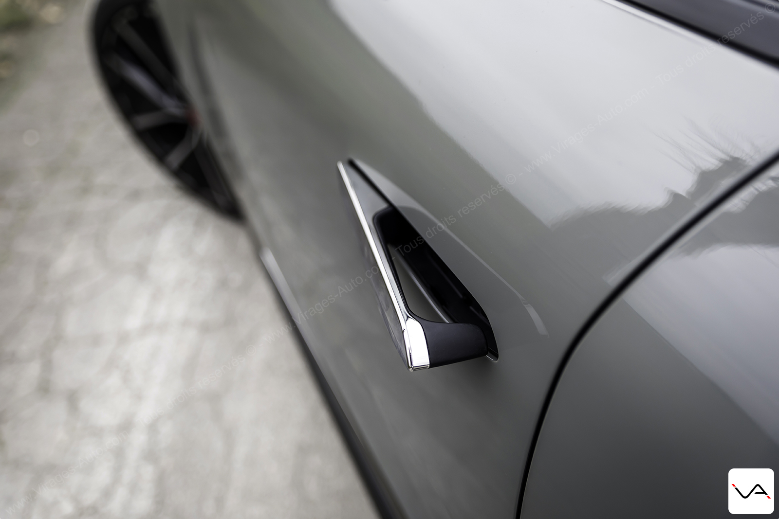 Perchée sur ses jantes de 20’’ Sydney (2300€), notre compacte se la joue presque Crossover. Sachez que si vous voulez encore renforcer l’aspect surélevé, une finition Cross existe. Notre modèle d’essai se présente dans une couleur Gris laqué avec toit noir Perla Nera (le tout pour 1090€). Ce n’est pas sans rappeler le célèbre gris Nardo de chez Audi. Une couleur qui donne à la fois un coté sportif mais qui souligne également toutes les lignes de style de la voiture. La DS 4 se retrouve ainsi bien mise en valeur.