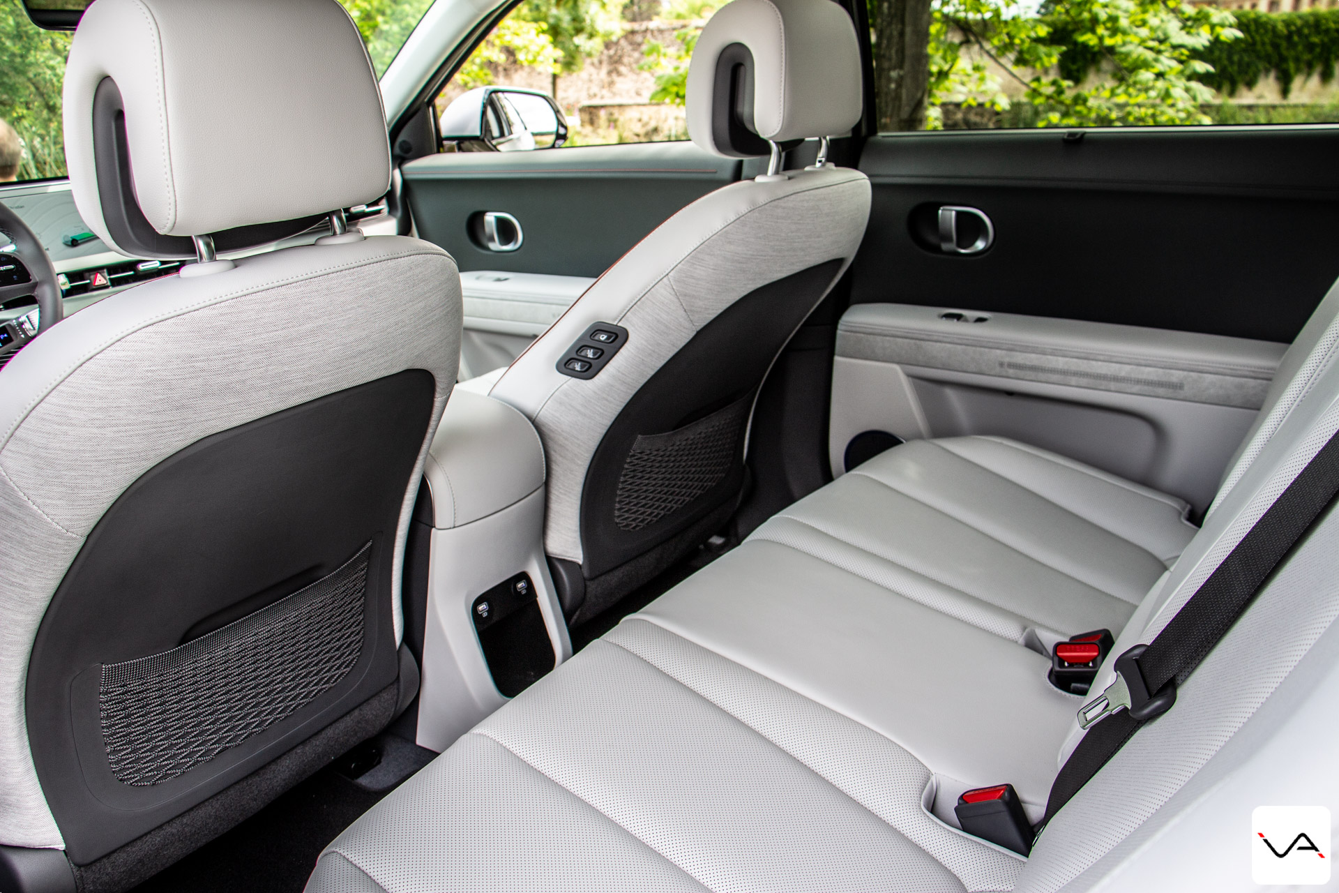 Mais revenons à l’intérieur. Côté esthétique, c’est un peu frustrant. Si les matériaux sont haut de gamme (nous y reviendrons par la suite), l’aspect à l’oeil et au toucher fait très plastique standard ou imitation bas de gamme. Heureusement, les quelques touches d’aluminium ici et là apportent une touche de robustesse. Le confort d’assise n’est pas en reste avec l’intégralité des places et banquettes réglable électriquement. Cela permet de personnaliser, enregistrer et régler toutes les places indépendamment depuis l’écran central et lancer une de ses configurations favorites. Les sièges avant de la Ioniq 5 offrent également la possibilité de se mettre en position « zéro gravité » pour un moment de détente ultime. L’habitacle est très lumineux, surtout dans cet intérieur à la configuration clair Gris Biton, même sans le toit panoramique. L’impression d’espace est vraiment présente. C’est un habitacle à vivre, très agréable, que vous soyez à l’avant ou à l’arrière.