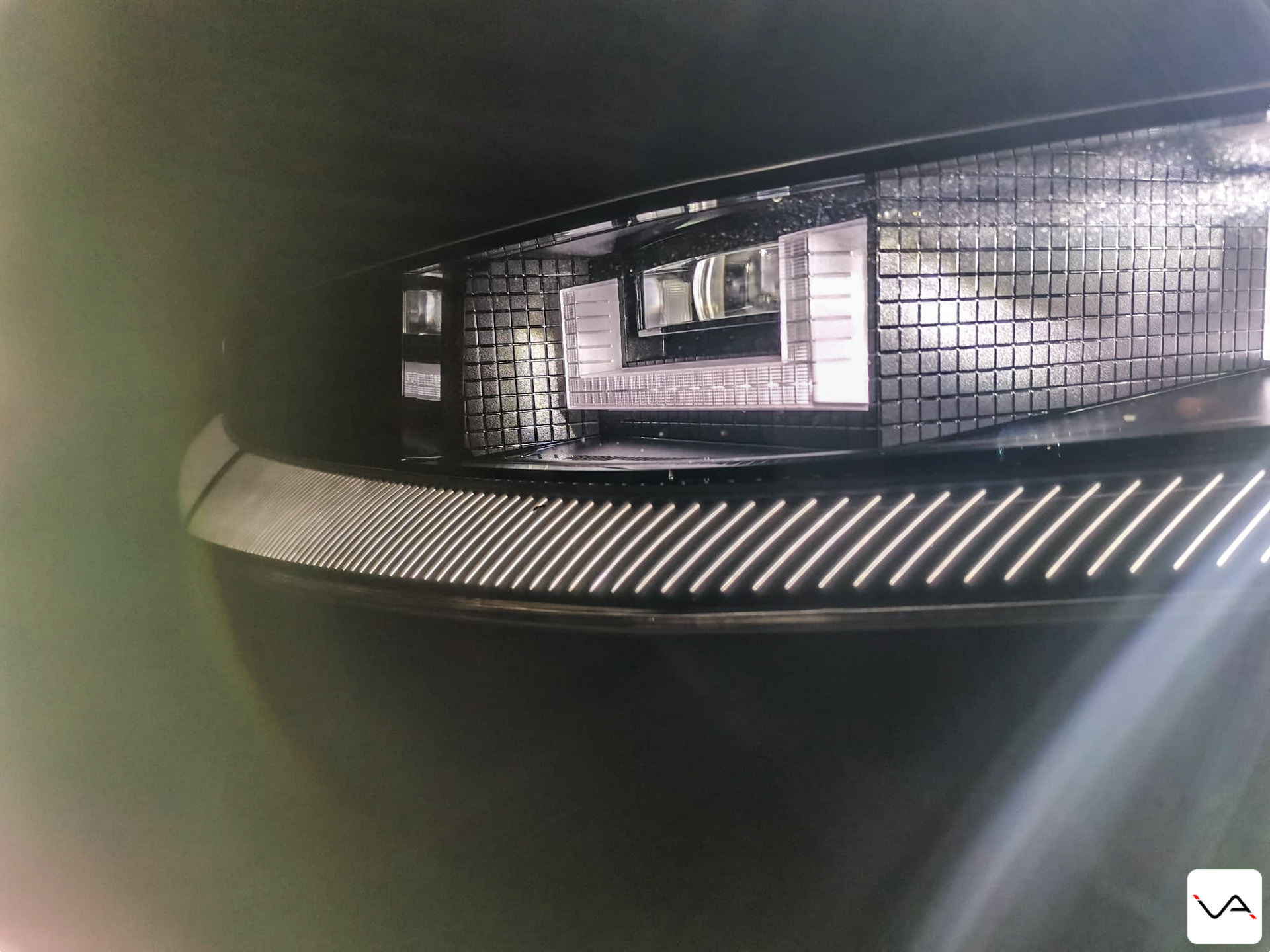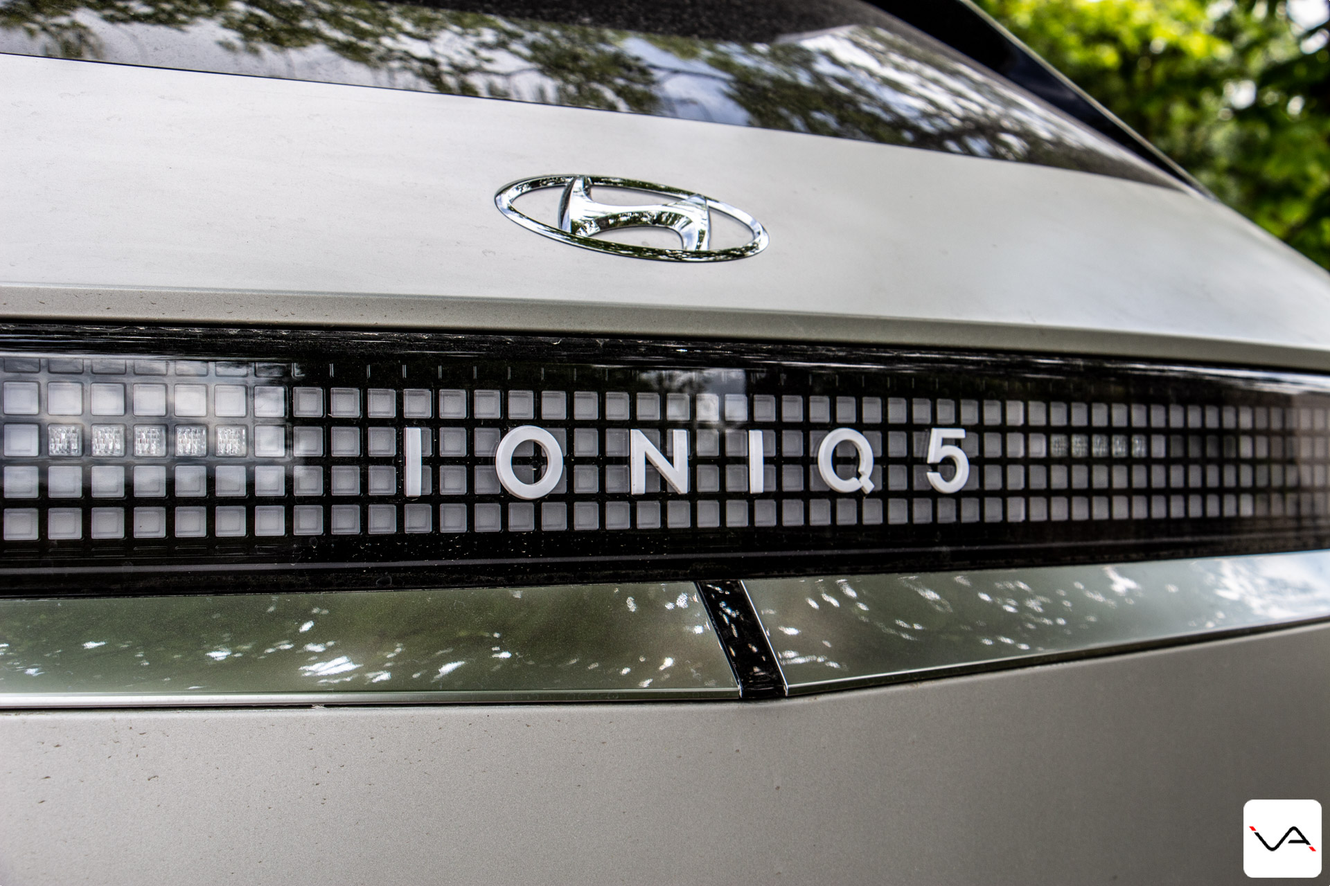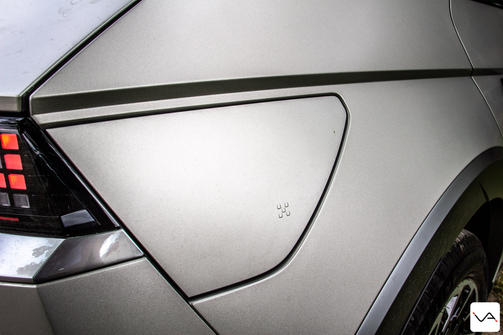 C’est bel et bien le design qui détonne dès que l’on pose le regard sur ce Ioniq 5. D’après Hyundai, le Ioniq 5 reprend les codes de la Pony de 1975. Nous on y voit plutôt des codes pris ici et là, de la Lancia Delta à la DeLorean en passant par K2000. Quoi qu’il en soit, le style rétro-futuriste lui va plutôt bien. La calandre avant en V est ultra géométrique et symétrique, et dévoile la nouvelle signature lumineuse à LED nommée « Pixel ». 256 pixels répartis sur toute la largeur de la calandre pour une signature lumineuse directement sortie d’un jeu vidéo des années 80. Elle intègre également une indication du niveau de charge quand le véhicule est branché. Pour finir, elle intègre deux prises d’air actives, qui se ferment pour améliorer l’efficacité énergétique en conduite et s’ouvrent s’il est nécessaire de refroidir certaines pièces.