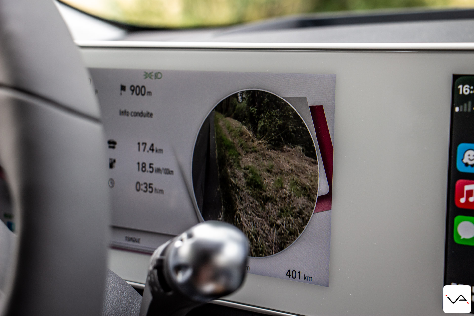 Le conducteur peut également bénéficier du retour des caméras d’angle-morts dans le combiné d’instrumentation numérique. A chaque déclenchement de clignotant, l’angle mort du côté correspondant est automatiquement affiché sur les compteurs numériques grâce aux cameras situées sous les rétroviseurs extérieurs. C’est un peu déroutant au départ, d’autant plus qu’on ne s’attend pas forcément à y voir ce genre d’information dans le combiné numérique. Mais c’est plutôt pratique. Enfin, le conducteur peut profiter d’un affichage tête haute avec réalité augmentée. Son fonctionnement s’est d’ailleurs avéré un peu aléatoire lors de notre essai. Ce n’est pas au niveau d’une Mercedes Classe S, mais c’est un équipement qui sera sans doute mis à jour par la suite.
