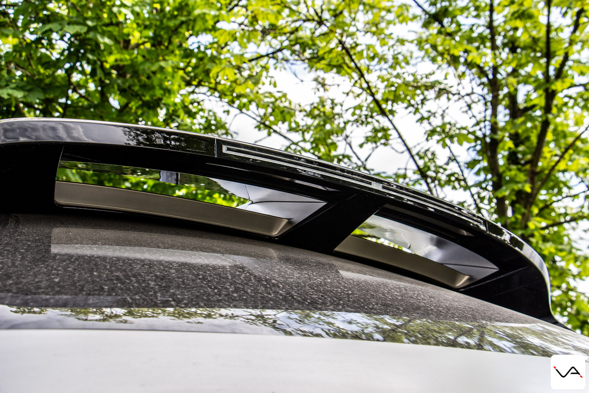 Le profil se veut dynamique, avec une ligne de toit fuyante, un montant C incliné vers l’avant à 45° et une découpe marquée en Z dans les portières. Les poignées de portes affleurantes adoucissent un peu ce profil agressif. A l’arrière, on retrouve la symétrie en V par rapport à la calandre avant, la signature lumineuse Pixel, l’absence d’essuie-glace et un volumineux spoiler. Terminons le tour du propriétaire avec deux éléments ; la très étonnante et très jolie teinte Gravity Gold mate, qui renforce le style avant-gardiste, et les jantes 20″ Diamant qui assoient le crossover mais qui renforcent aussi son gros gabarit. Et si tout seul sur les photos il ne fait pas énorme, garez le à côté d’un Peugeot 3008, et vous verrez qu’ils font les mêmes dimensions.