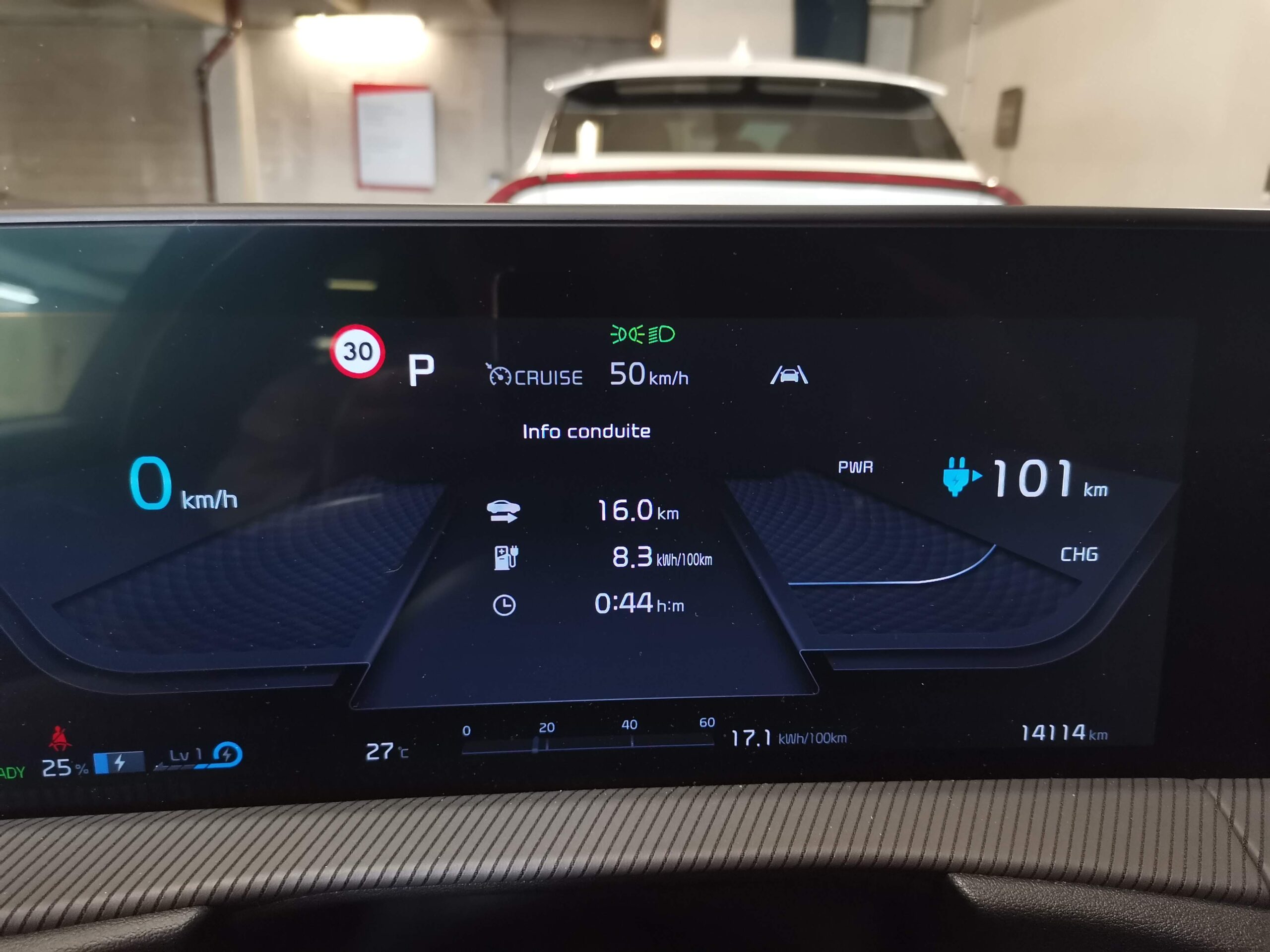 Versailles, jeudi soir, 19h. Il faut quitter la région parisienne à l’extrême opposé, à l’est. Autant vous dire que les premiers kilomètres ne vont pas vider la batterie puisque la vitesse moyenne ne dépassera pas les 20 km/h… La voiture est un peu trompée dans ce monde et m’annonce que je devrais avoir assez d’autonomie pour aller au Luxembourg sans recharger. J’en doute fort cependant. Une fois sur l’autoroute A4 à 130km/h au régulateur, la vitesse moyenne augmente sensiblement. Et l’autonomie suit une courbe diamétralement opposée.
