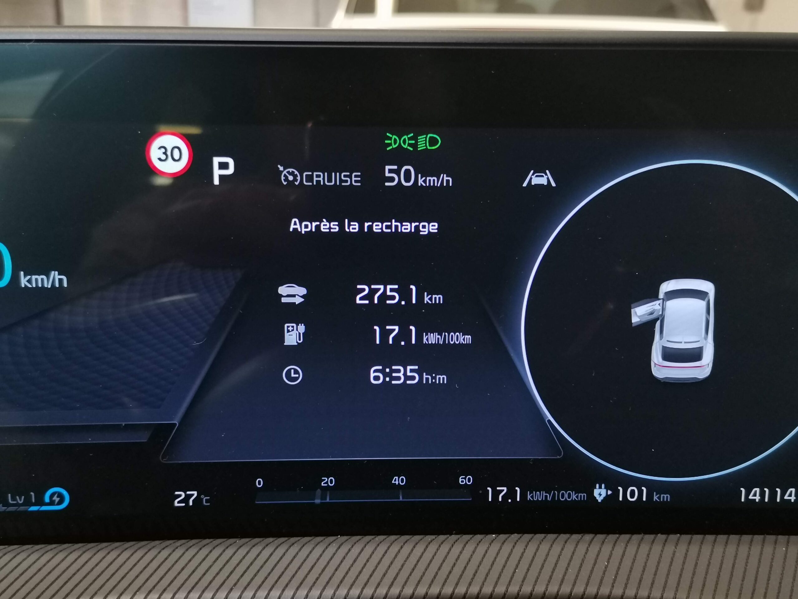 Les conditions de notre trajet effectué en juin sont plutôt bonnes. La température extérieure ne nécessitera ni climatisation, ni chauffage, ce qui devrait contenir notre consommation moyenne. Le trajet en Allemagne sera l’occasion d’aller également tester la vitesse maximale de la voiture sur les Autobahn si la visibilité est bonne et de voir à quel point la batterie se vide à de telles vitesses. Bref, nous voilà partis pour notre premier très grand voyage en électrique.
