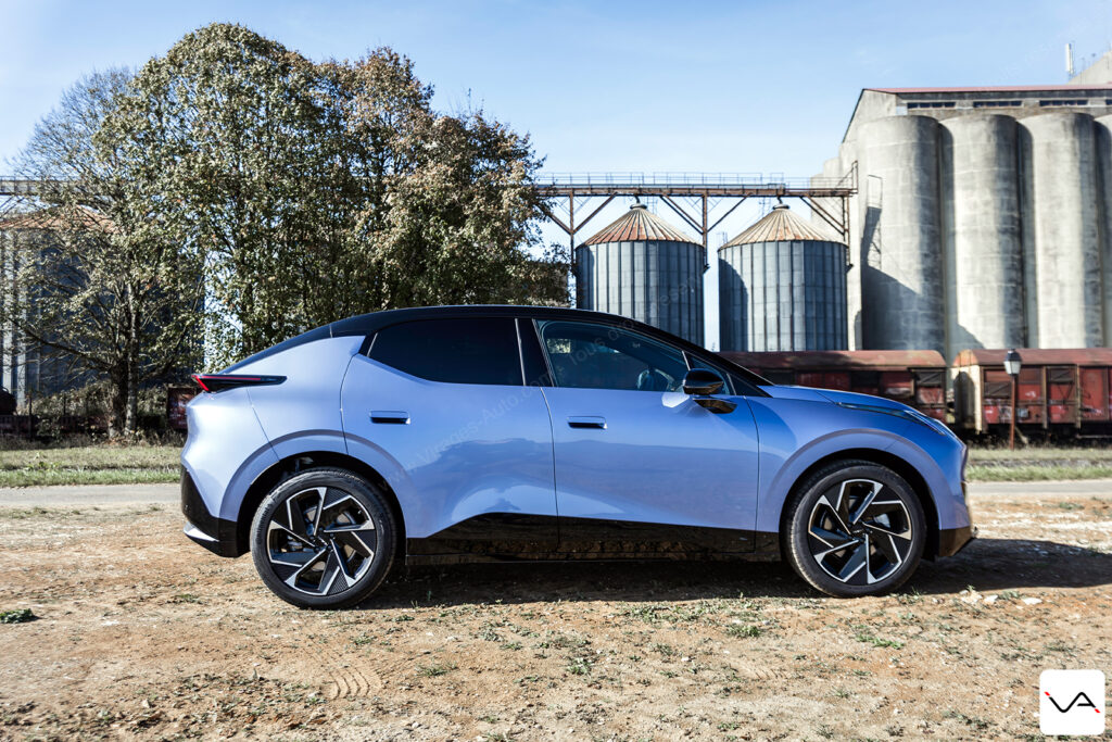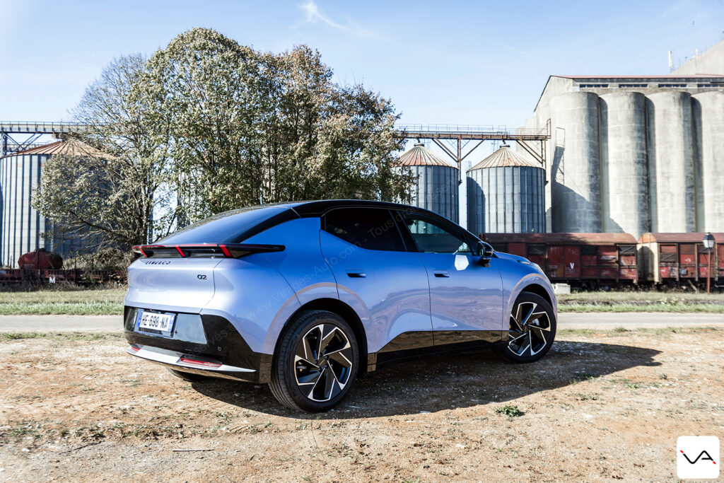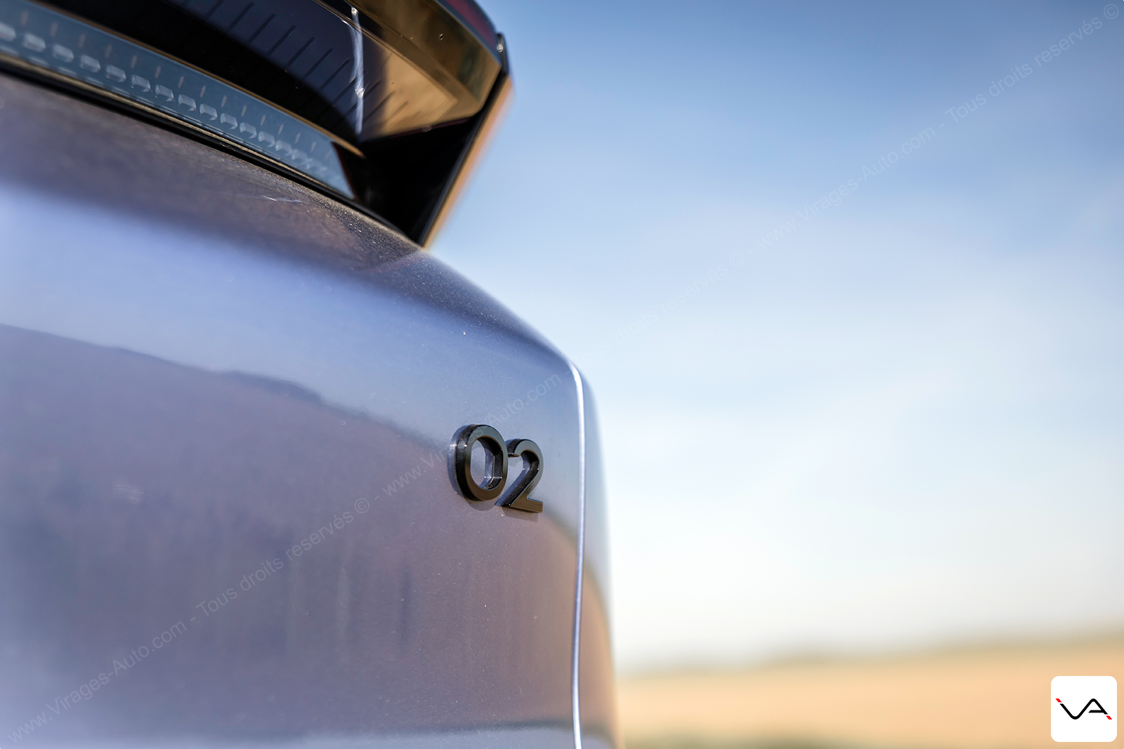 Enfin, notre modèle d’essai en finition More — la plus haute de la gamme — s’équipe de jantes de 20 pouces au dessin dynamique. Ces jantes remplissent parfaitement les arches de roue et donnent au 02 un vrai look sportif. Cela contribue sans doute beaucoup au charme global : avec ces roues, la voiture paraît affûtée, posée et visuellement très réussie.