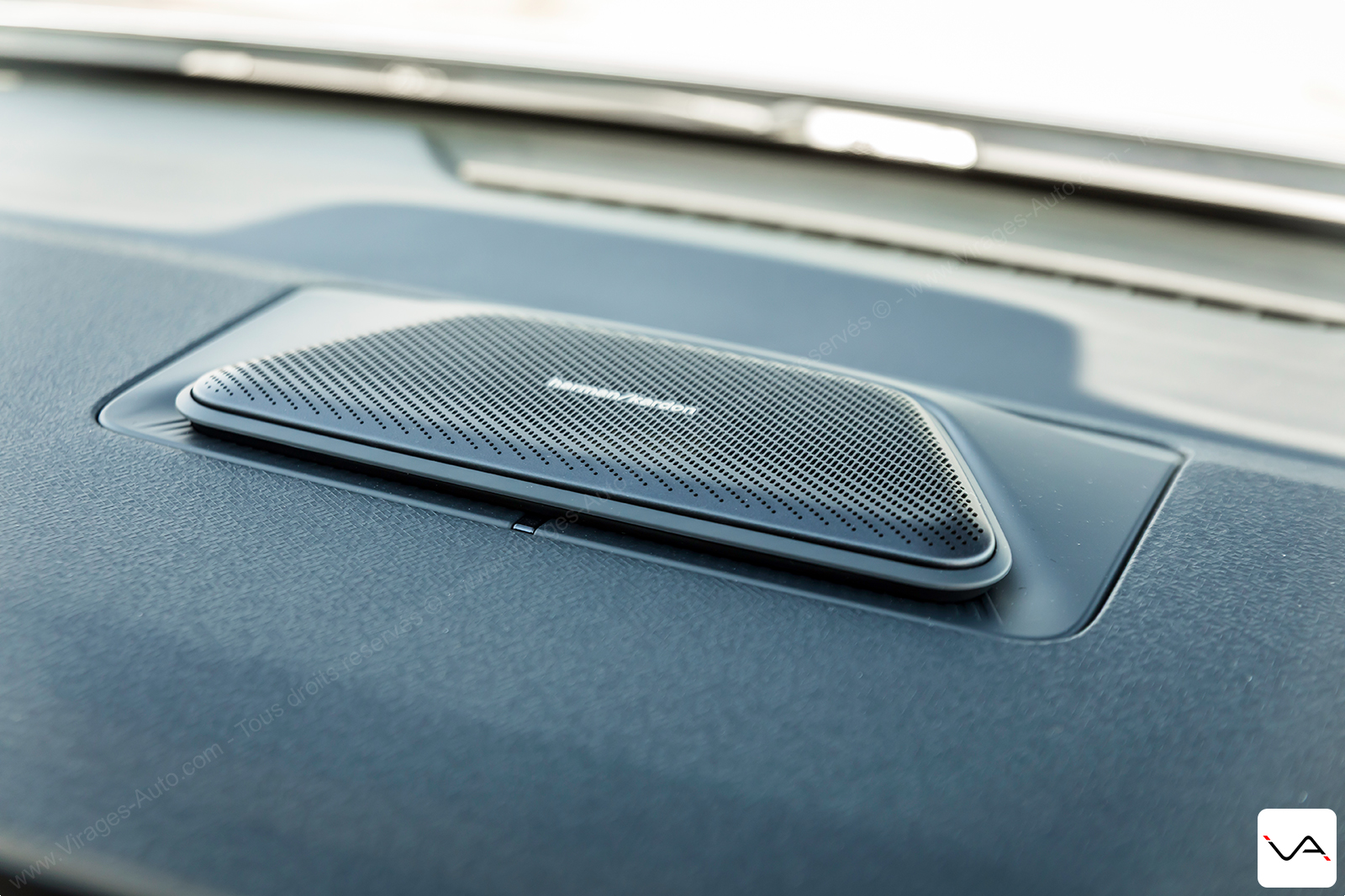 Pendant le trajet, j’ai aussi relevé quelques petits détails bienvenus côté techno : un rappel visuel des clignotants via l’éclairage d’ambiance (une lumière qui défile dans le sens du clignotant). Gadget ? Oui, mais tellement bien intégré et original. On repère aussi une HiFi Harman Kardon composée de 14 haut-parleurs qui délivre un rendu sonore bluffant. Nous sommes proches d’un auditorium pour une voiture de ce segment.