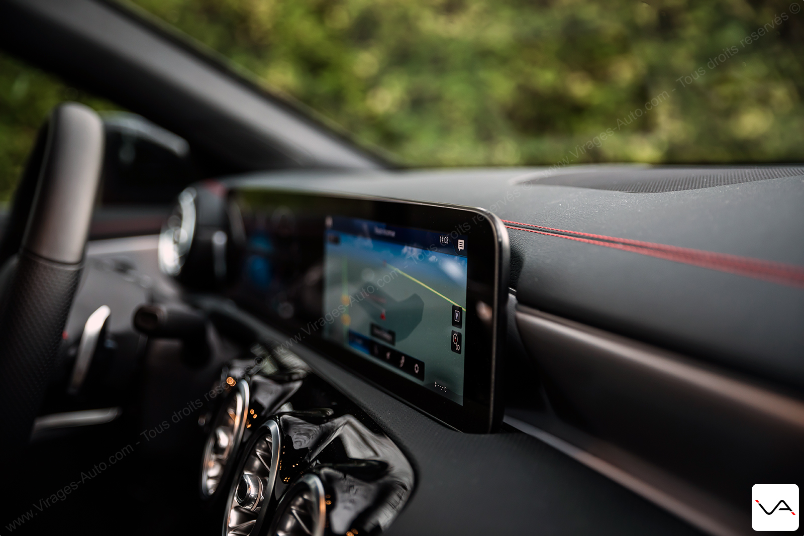 Equipé du Pack d’assistance à la conduite (2.200 €), notre CLA Coupé met le cap sur la conduite autonome avec de multiples capteurs qui vous protègent dans toutes les situations. Ceux-ci sont à mon goût trop intrusif dans la conduite avec des coups de freins pas forcément justifié par moment lorsque vous mordez légèrement une ligne continue par exemple. Cependant, ces aides restent tout de même sécurisantes pour la plupart des utilisateurs. Et c’est ce que l’on demande d’une telle voiture !
