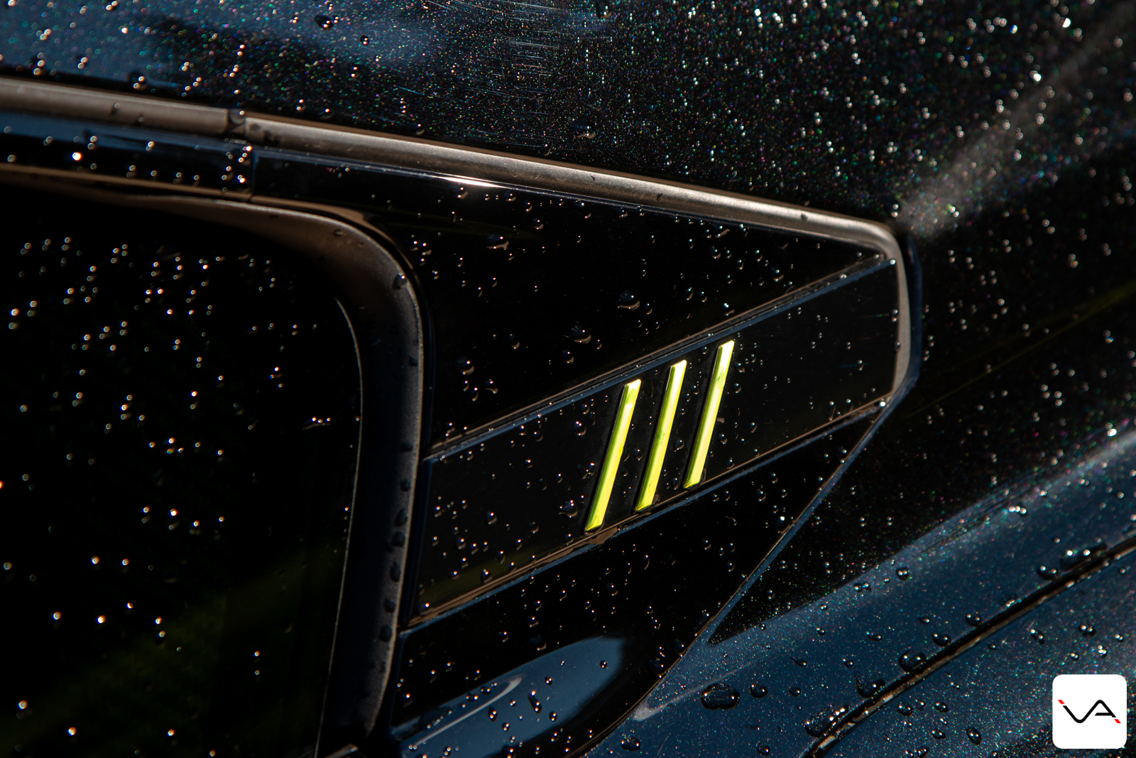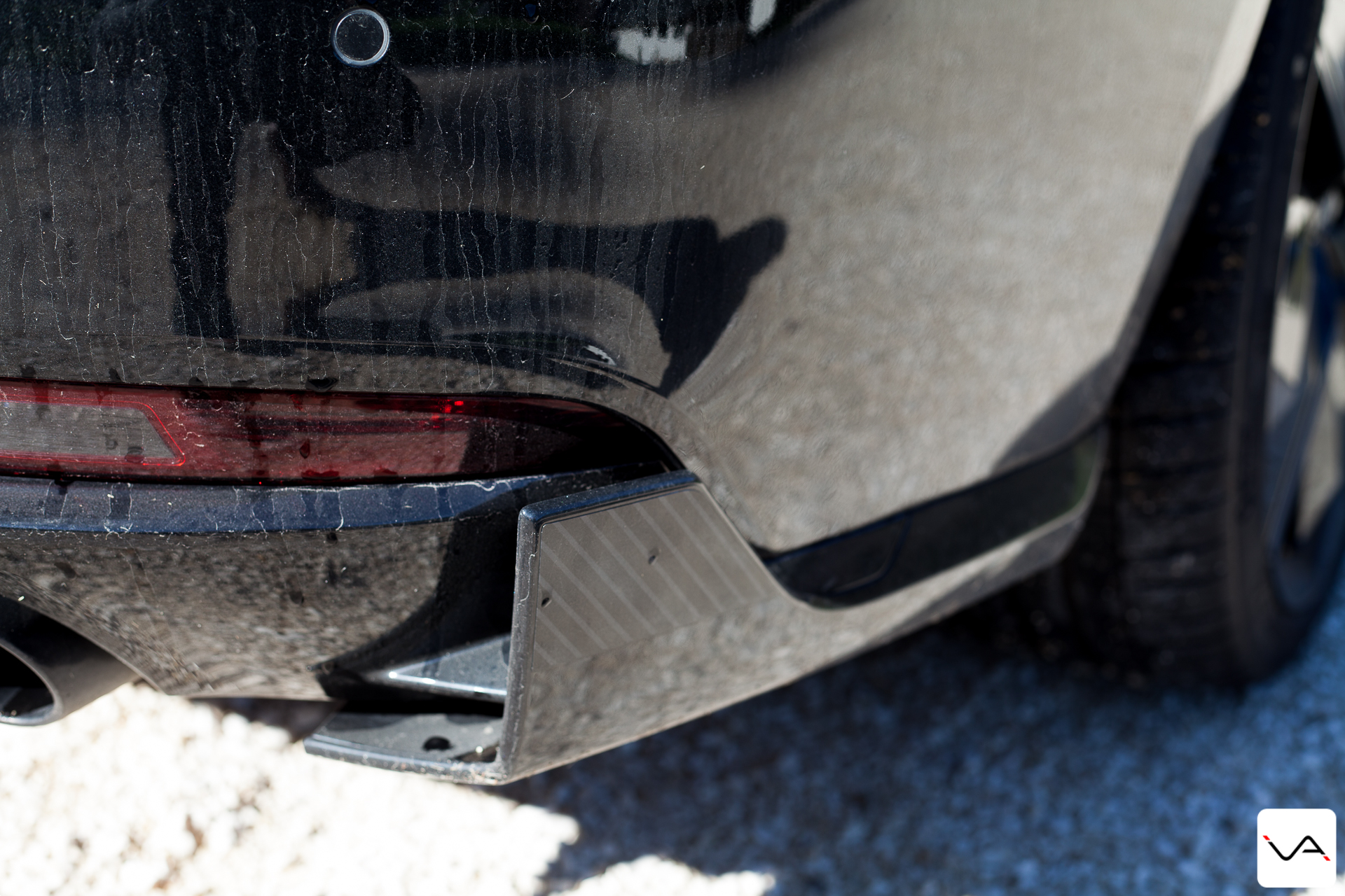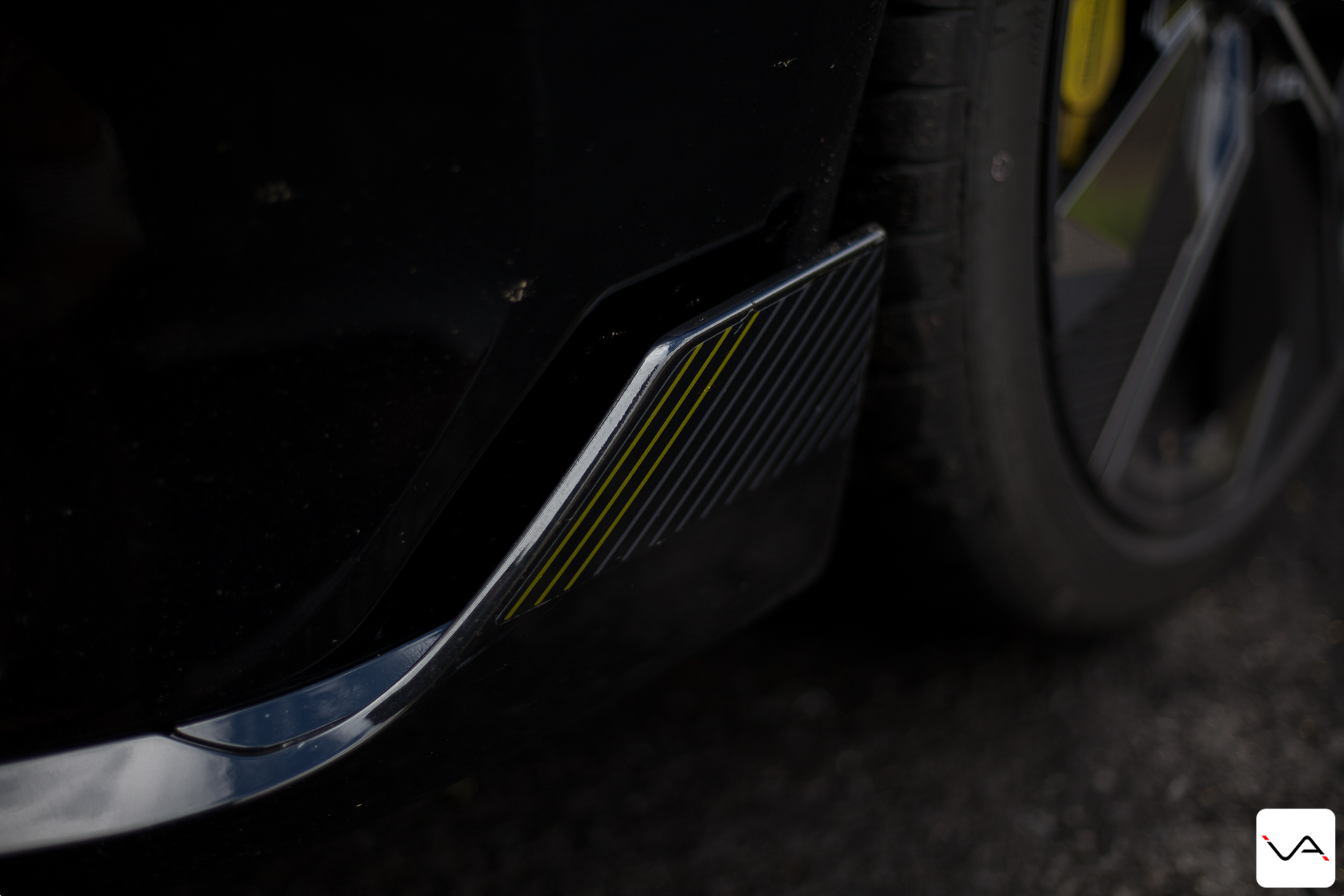 Enfin, notons les jantes, en 20 pouces, chaussées de Michelin Pilot Sport 4 S. Leur dessin n’est pas le plus aérien que l’on ait vu, mais l’ensemble se montre plutôt très sympa. A l’arrière, la voiture fait beaucoup plus basse qu’elle ne l’est. C’est sûrement dû au fait que tous les logos soient passés en noir.
