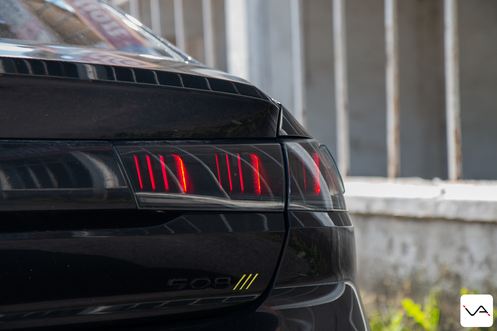 Pourtant, la calandre est spécifique et rend la Peugeot 508 de base pour gentille petite fille sage. La calandre se veut acérée, tout en relief, et très agressive. Lorsque la 508 PSE arrive dans vos rétroviseurs, c’est clairement, mais alors très clairement, méchant. Les ailettes aérodynamiques disséminées sur la partie basse de la voiture sont ornée de petits stickers, ramenant un peu de couleur kryptonite. On les retrouve sur le pare chocs avant, son homologue arrière, ainsi que les bas de caisses. Cependant, à l’usage, ça fait quelque peu ramasse miette pour les gravillons…