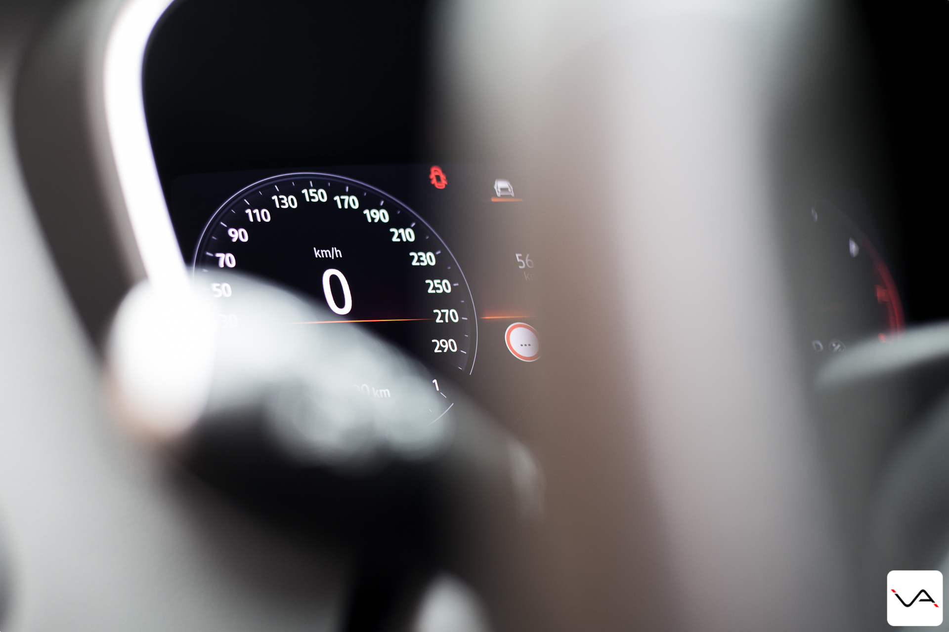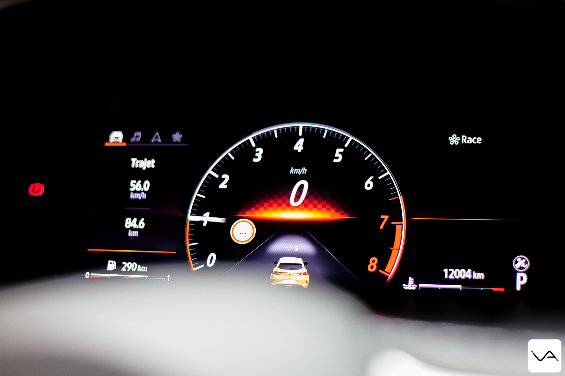 Une fois installé au fond de mon siège, je me rend compte d’une chose assez déroutante. J’adore être assis au plus bas dans une voiture pour mieux ressentir la voiture et les sensations. Cependant, c’est la seconde fois seulement que je ne descends pas le siège au plus bas de ce qui est possible. La première fois étant le petit tour à la Ferté Gaucher, déjà dans une Mégane IV RS donc. C’est une petite preuve de plus, si n’en fallait, que Renault Sport fait tout pour que le plaisir de conduite et les sensations soient au rendez-vous.