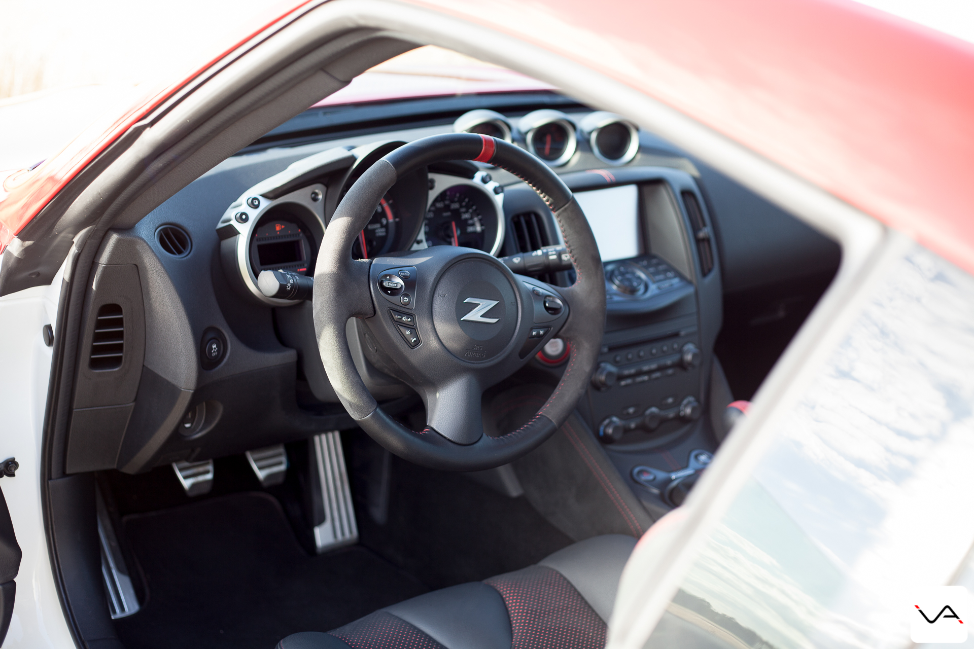 Bon, sauter de la Nissan 350Z à la Nissan 370Z fait apparaître dès le début la plus grande qualité et le plus grand défaut de la voiture. C’est beaucoup plus simple. De ce fait, cela en devient beaucoup plus facile à utiliser tous les jours. La direction est beaucoup plus légère, l’embrayage également. La boîte de vitesses est mieux guidée aussi. D’ailleurs, cette même boîte de vitesses exerce un Rev matching à chaque changement de rapports. Globalement, elle fait un talon pointe à votre place. Beaucoup plus simple on vous dit.